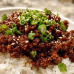 A quick and comforting Korean beef bowl recipe, perfect for busy weeknights, combining ground beef, savory sauce, and fresh vegetables over rice.