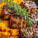 This recipe transforms ordinary pork into an extraordinary dish bursting with flavor. The tangy apple cider melds seamlessly with savory notes of thyme and garlic, creating a sauce that will make your taste buds dance. Paired with the creamy sweetness of mashed sweet potatoes, it’s comfort food at its finest. Perfect for family gatherings or a special weeknight dinner, this dish is sure to impress and satisfy.