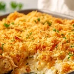 This casserole is a dream come true for busy weeknights. It’s comforting, easy to prepare, and deliciously rich. The creamy blend of chicken, soup, and sour cream mingles beautifully with the buttery Ritz cracker topping, creating a perfect crunch that contrasts with the soft, flavorful filling. Not only is it a culinary delight, but it’s also a great way to use up leftover chicken. Plus, it’s highly adaptable to your family’s tastes—add veggies, swap in different cheeses, or even spice things up with some hot sauce. It’s a guaranteed crowd-pleaser that will have everyone asking for seconds!