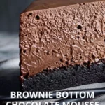 A decadent dessert featuring a fudgy brownie base topped with a luxurious chocolate mousse, combining dark and milk chocolate for an indulgent experience.