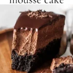 A classic, rich Chocolate Mousse Cake featuring a dense chocolate cake base and a luxurious chocolate mousse topping.