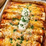 Once out of the oven, allow the enchiladas to rest for a few minutes—this helps them hold together when you serve. Garnish with chopped cilantro for a fresh flair, and don’t forget the sour cream on the side!