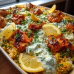 A simple and delicious Dump and Bake Chicken Tzatziki Rice, perfect for busy weeknights, combining tender chicken, tzatziki sauce, and fluffy jasmine rice in a convenient one-pan meal.