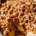 A comforting dessert made with baked apples and a crunchy oat topping, perfect for family gatherings or cozy evenings.