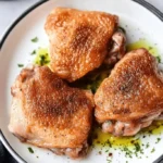 As the chicken thighs bake in the oven, the spices and olive oil create an aromatic scent that fills your kitchen, promising a warm, hearty meal. Within an hour, you’ll be serving up lovingly roasted chicken that is both crispy on the outside and juicy on the inside—a meal that tastes like you spent hours preparing it, but really took almost no time at all.