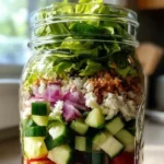 There’s nothing quite like a homemade salad to boost your mood and energize your day. Whether you’re prepping it for lunch at work or for a cozy dinner at home, this Greek Mason Jar Salad delivers in both flavor and convenience. So grab those mason jars, get layering, and let every forkful of this delicious salad remind you of sunny Mediterranean days filled with laughter and love.
