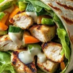 A quick and healthy grilled chicken wrap filled with vibrant veggies and creamy ranch dressing, perfect for lunch or dinner.