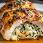 A delicious stuffed chicken breast filled with a creamy blend of cheese and spinach, reminiscent of Ruth’s Chris Steak House.
