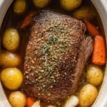 A comforting slow-cooked rump roast with tender vegetables and rich gravy that fills your home with a heavenly aroma.