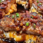 Imagine sinking your teeth into a succulent pork chop that’s not just stuffed; it’s bursting with the fantastic mix of three types of velvety cheese and crispy bacon. The complexity of flavors—from the sharpness of blue cheese to the gooeyness of cheddar and mozzarella—combined with the smokiness of bacon makes this dish irresistible. It’s the kind of hearty meal that brings everyone to the table and keeps them coming back for more. Plus, it’s an impressive dish for gatherings or a cozy dinner at home, bringing both warmth and joy to your dining experience.