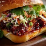 Imagine biting into a perfectly grilled chicken thigh, marinated in a bold blend of gochujang and sesame oil, topped with a refreshing, crunchy slaw. This sandwich is a perfect marriage of flavors and textures—spicy, sweet, and tangy, with a satisfying crunch that perfectly complements the tender chicken. It’s the kind of dish that transports you straight to the streets of Seoul, all while comfortably nestled in your kitchen. Plus, it’s easily customizable to suit your spice tolerance or ingredient preferences!