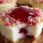 Delightful mini cheesecake bites filled with cream cheese, strawberry jam, and a crunchy topping—perfect for summer gatherings.