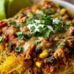 A comforting and vibrant dish that combines spaghetti squash with a flavorful turkey enchilada filling, perfect for a cozy meal.