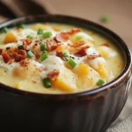 This isn’t just any potato soup; this is a bowl of nostalgia, a creamy delight that dances on your taste buds and warms your soul. The blend of crispy bacon, comforting potatoes, and decadent cream creates a symphony of flavors that’s just begging to be shared. Top it off with your favorite garnishes, and you’ve got a dish that’s as beautiful as it is delicious. Whether you’re huddled under a blanket on the couch or hosting a gathering with friends, this soup is the epitome of comfort food.