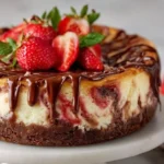 A creamy and decadent cheesecake infused with fresh strawberries and rich white chocolate, made effortlessly in a pressure cooker.