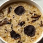 A cozy bowl of Wild Rice and Morel Mushroom Soup that combines earthy flavors with creamy goodness, perfect for chilly evenings.